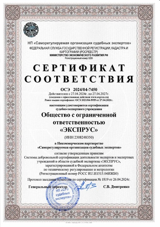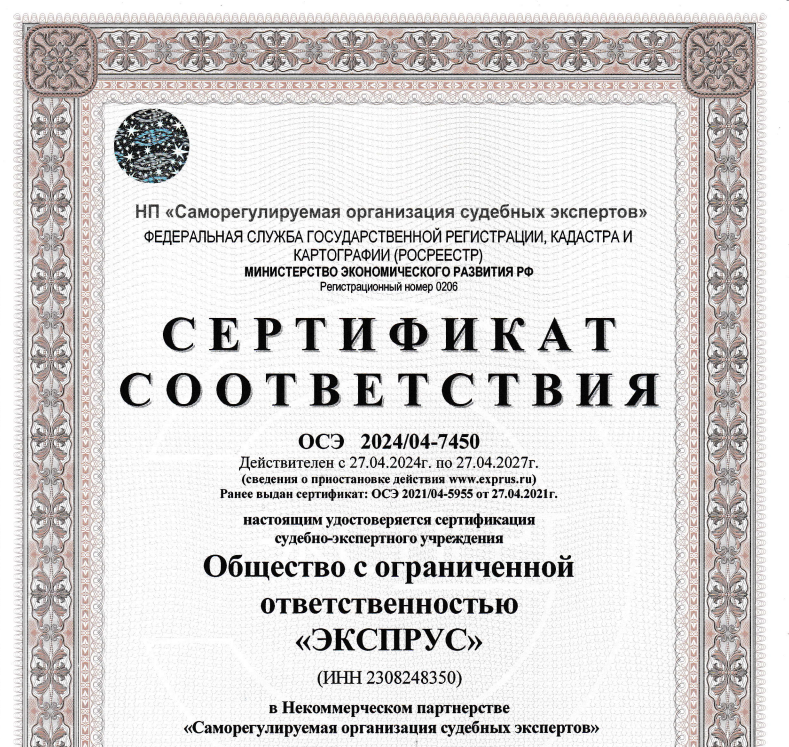 Заказать звонокООО «ЭКСПРУС» прошло процедуру добровольной сертификации в НП «СРО судебных экспертов» (рег. номер РОСС RU.И1515.04ИЖБО)